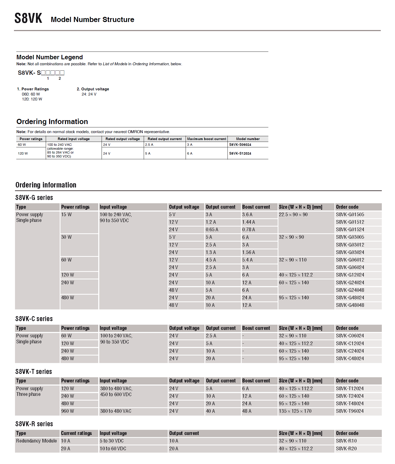 - Bộ nguồn xung dòng S8VK của Omron được sử dụng chung cho các ngành công nghiệp và mang tính toàn cầu hóa, sử dụng cho mọi đối tượng, mọi khu vực trên thế giới với các dòng sảm phẩm như: S8VK-S, S8VK-C, S8VK-G, S8VK-T, S8VK-R phù hợp với từng loại ứng dụng trong điều khiển tự động hóa công nghiệp, điều này cũng giúp cho các đơn vị sản xuất thiết bị có thể xuất khẩu tới mọi ngõ ngách trên thế giới.
