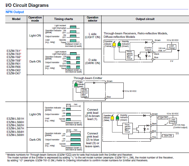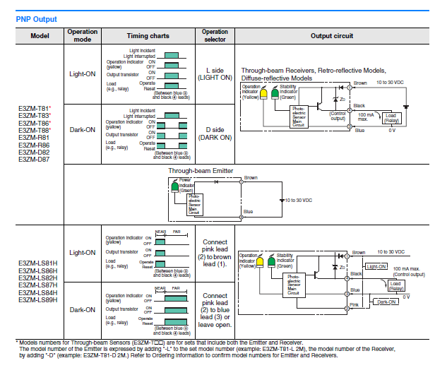 - Nhiều dải sản phẩm phụ (E3Z-B phát hiện vật trong mờ nhue chai lọ), E3Z-LT/R 6/8 dùng tia Lazer phát hiện được những vật thể khoảng cách rất xa 60/15, E3Z-LS có thể cài đặt được khoảng cách phát hiện thích hợp, E3ZM có vỏ Inox dùng trong công nghệ sản xuất thực phẩm.