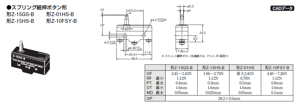 + Cơ cấu tác động: Panel mount roller plunger (12.7 * 4.8 dia., chống gỉ)