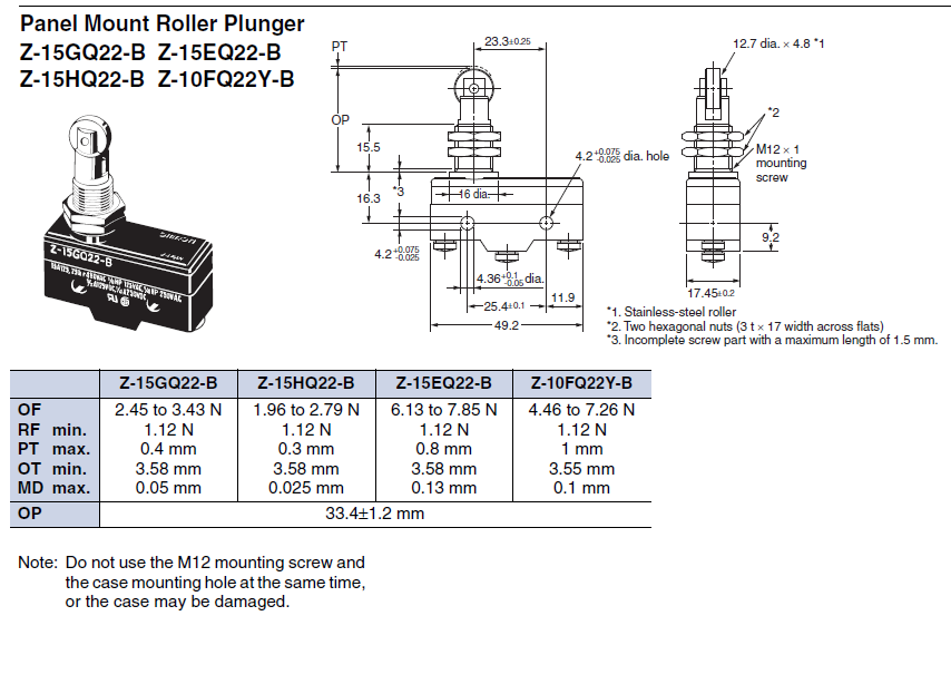 + Cơ cấu tác động: Panel mount roller plunger (12.7 * 4.8 dia., chống gỉ)