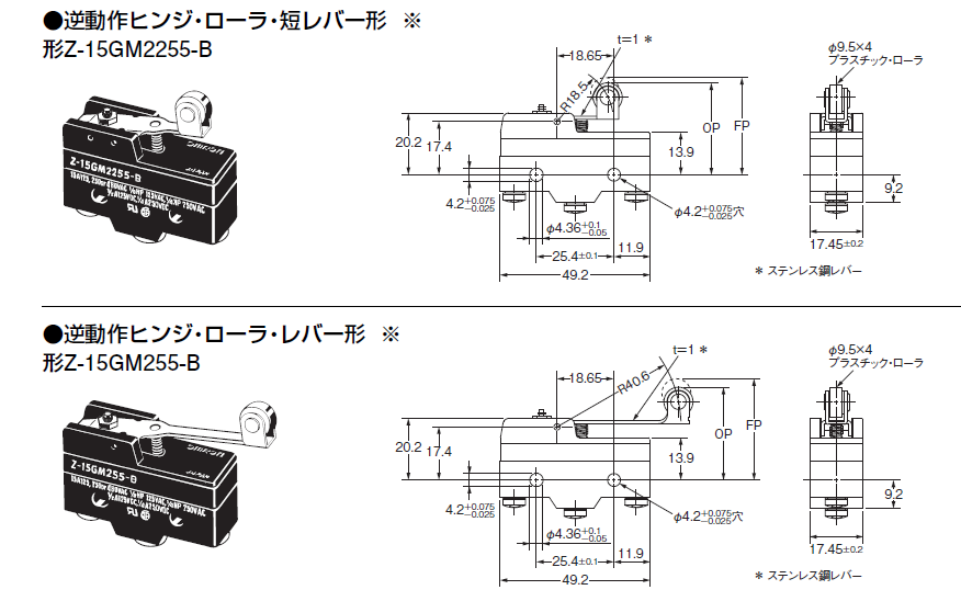 + Cơ cấu tác động: Panel mount roller plunger (12.7 * 4.8 dia., chống gỉ)