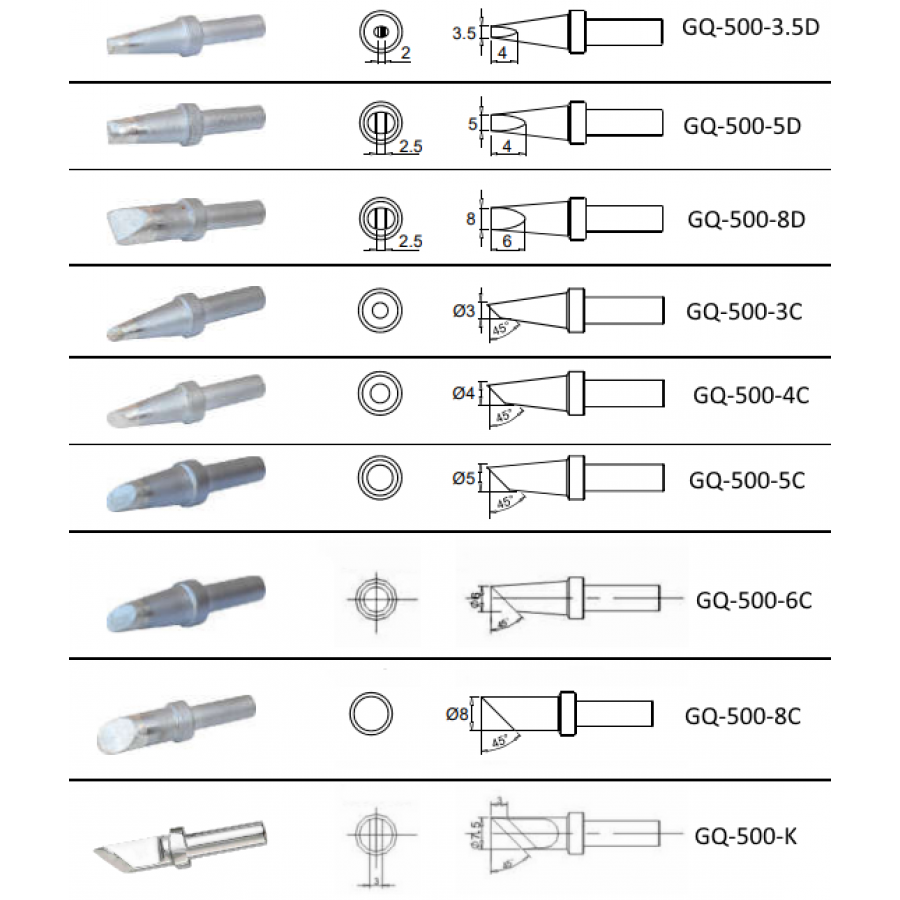500-B烙铁头,500-K烙铁头, 500-3.5D烙铁头,500-5D烙铁头,500-8D烙铁头,500-3C烙铁头,500-4C烙铁头,500-5C烙铁头,500-6C烙铁头,500-8C烙铁头, 500-4DK烙铁头