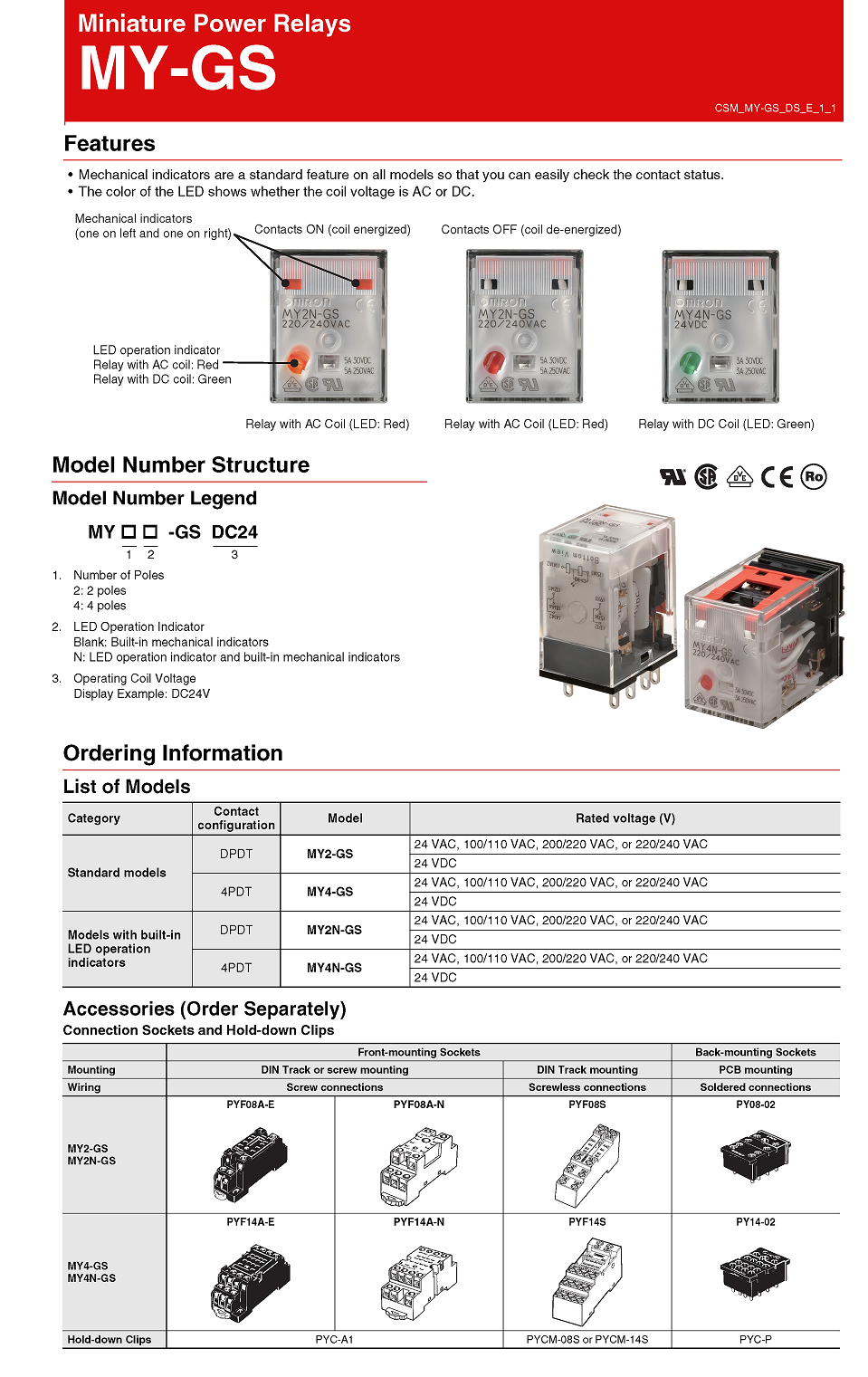 Rơ le trung gian Omron dòng MY-GS gồm có:
